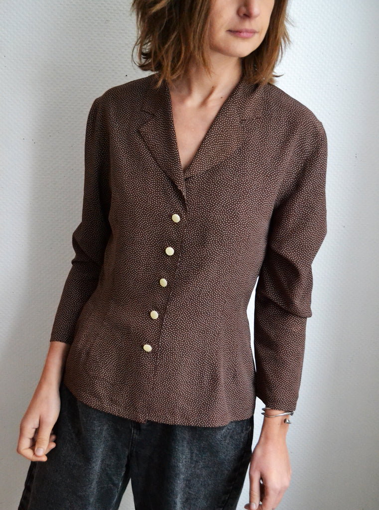 Jolie blouse à pois vintage Claudie Pierlot coloris chocolat,