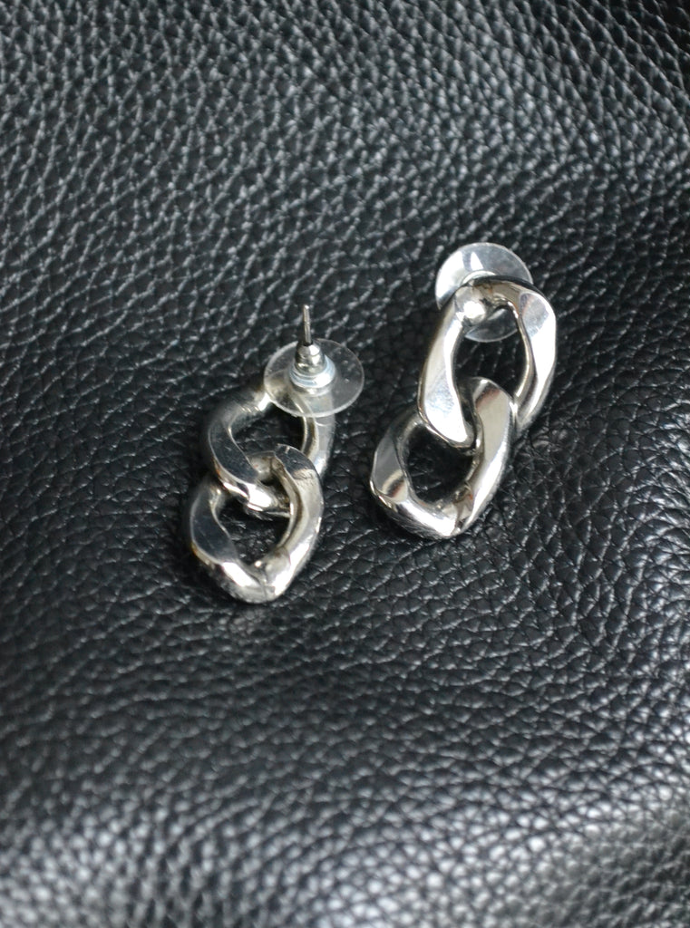 Une jolie paire de boucles d'oreilles constituées de deux maillons enchainés en métal argenté à porter sur un look chic ou plus casual.