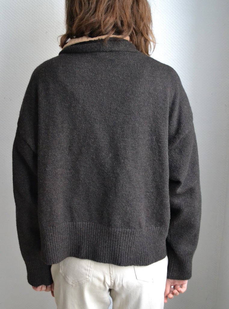 Joli gilet coloris chocolat loose manches légèrement chauve souris.