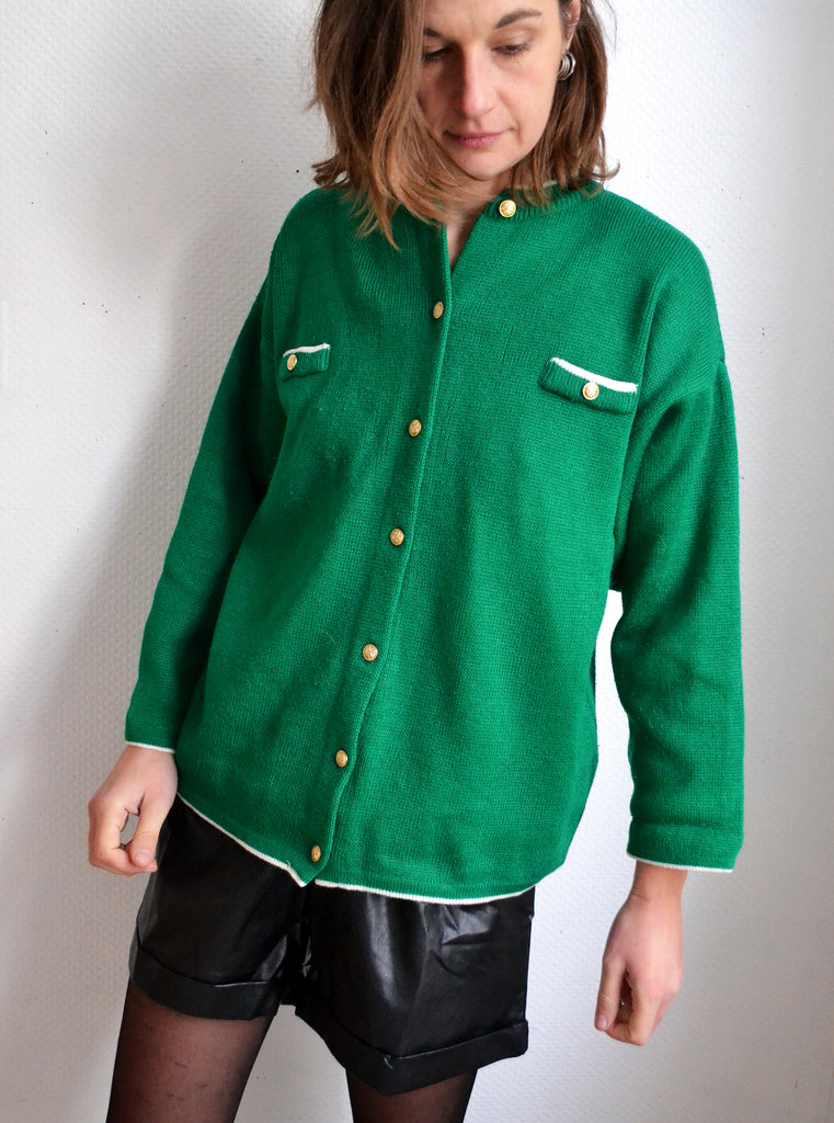 Joli gilet coloris vert peps vintage avec des petite boutons dorés.