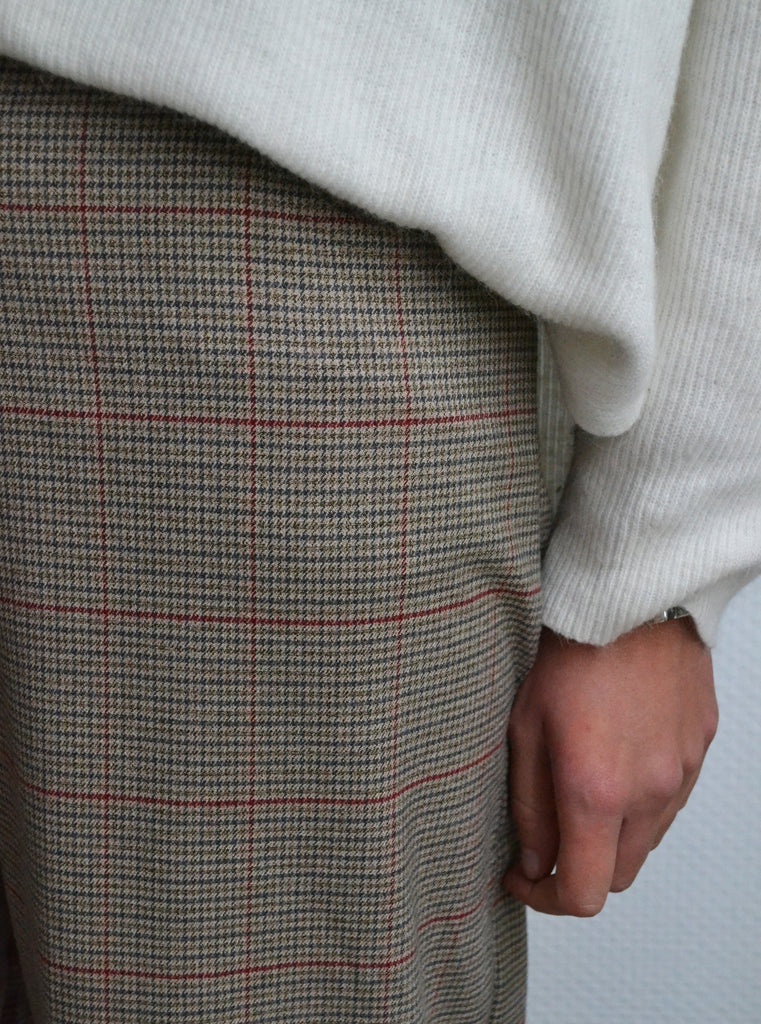 Joli pantalon motif prince de galle taille haute coupe Barrel avec une fermeture par un bouton, un zip et des poches .