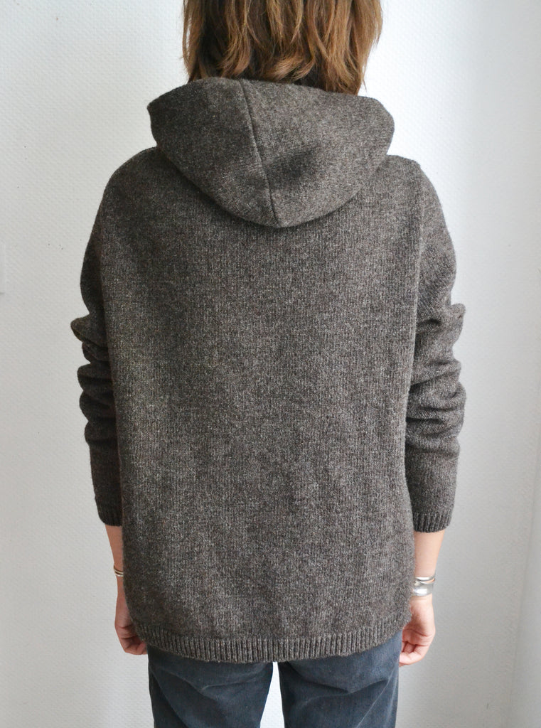 Superbe pull à capuche unisexe pure laine Longo Mai .