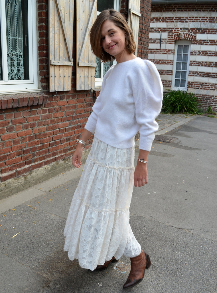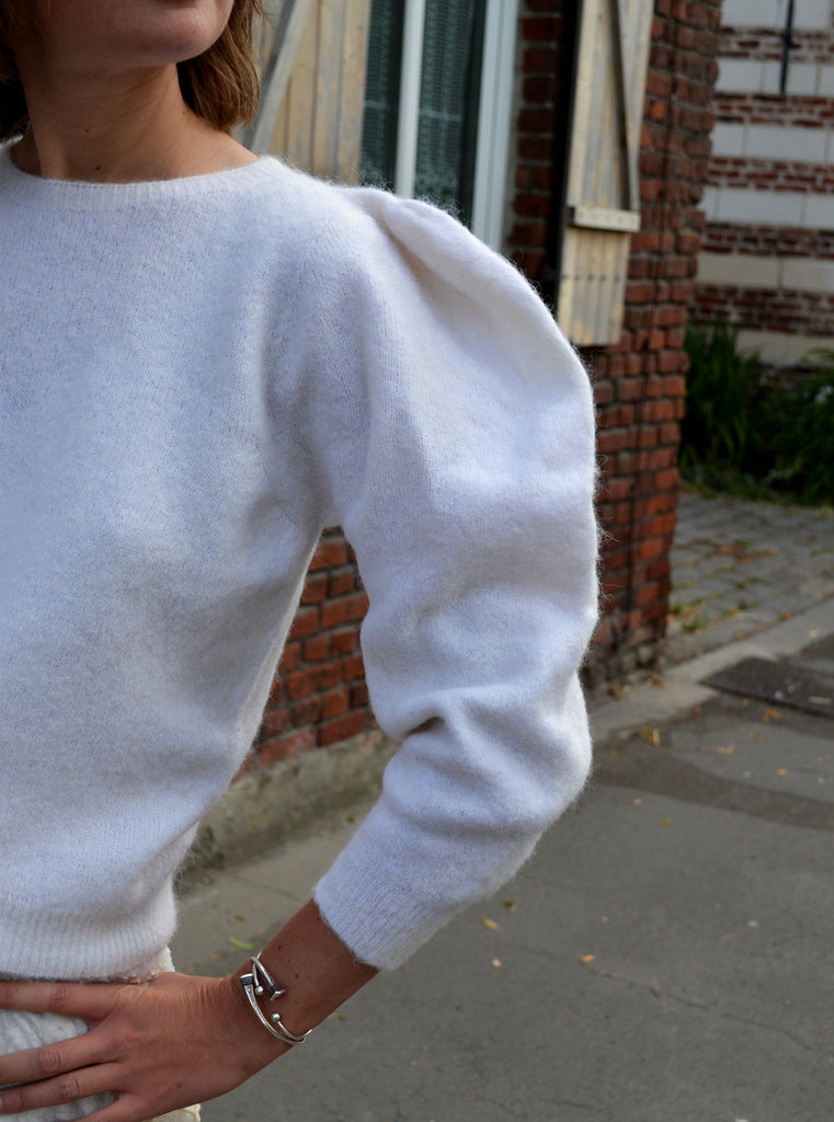 Joli pull blanc manches ballons col rond Sens Uniq.