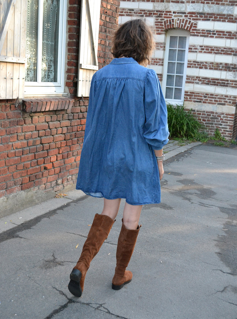 Jolie robe en denim manches ballons,