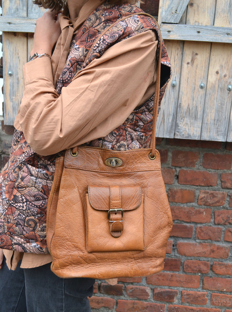 Un joli sac de marque à la belle qualité à porter à l'épaule ou en bandoulière. Un élégant sac en cuir marron à porter sur un look chic ou plus casual.