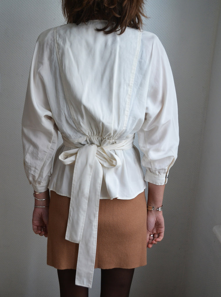 Jolie blouse coupe cache cœur Ba&sh coloris écru avec un lien à nouer au dos ton sur ton.