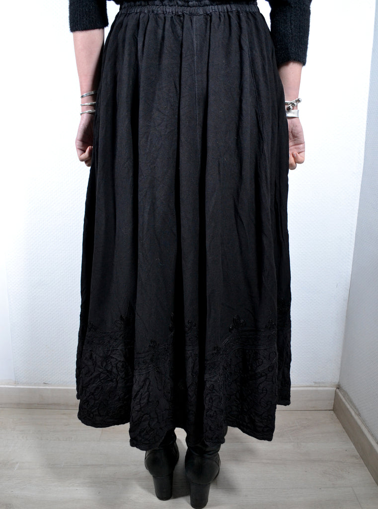 Jupe Longue Noire Brodée