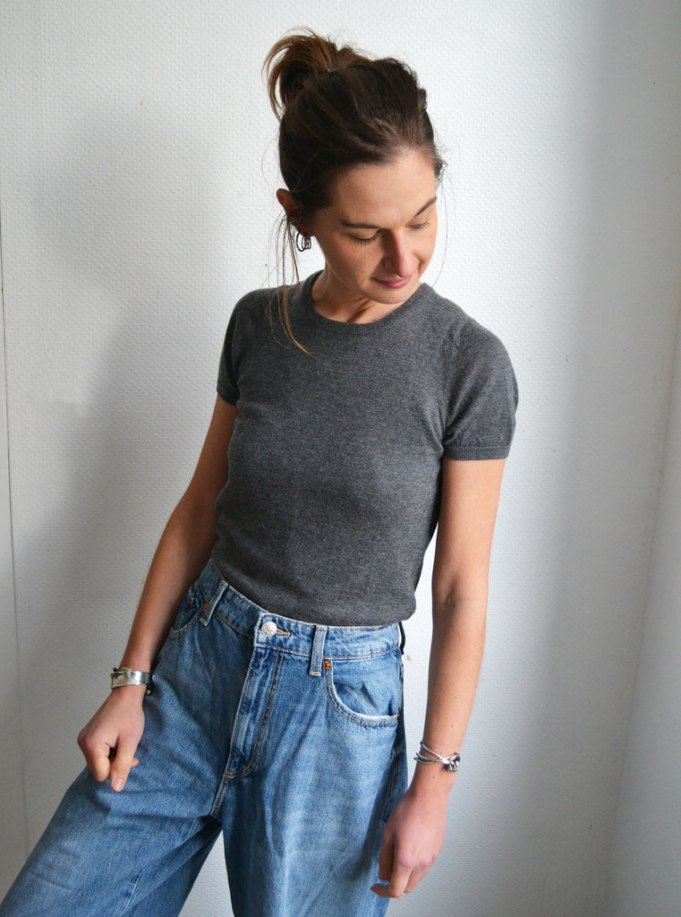 Joli t-shirt en cachemire gris Tara Jarmon,