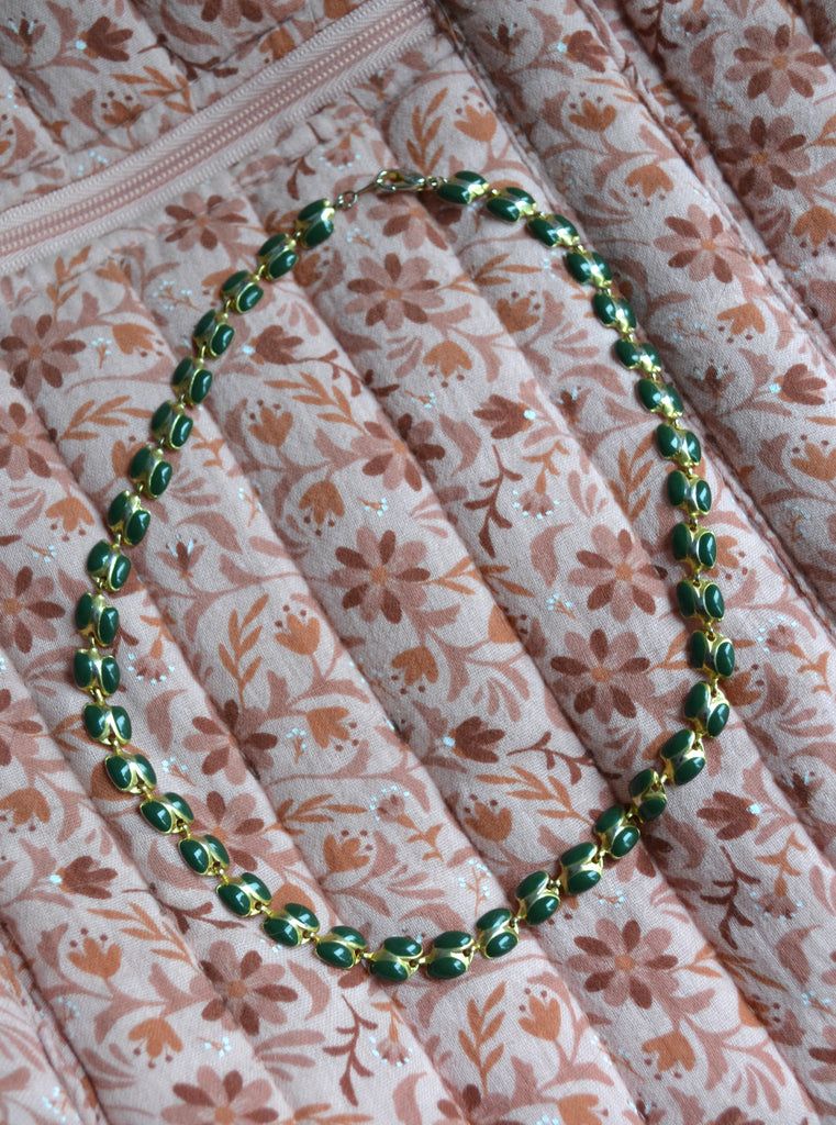 Très joli collier vintage coloris doré et kaki.