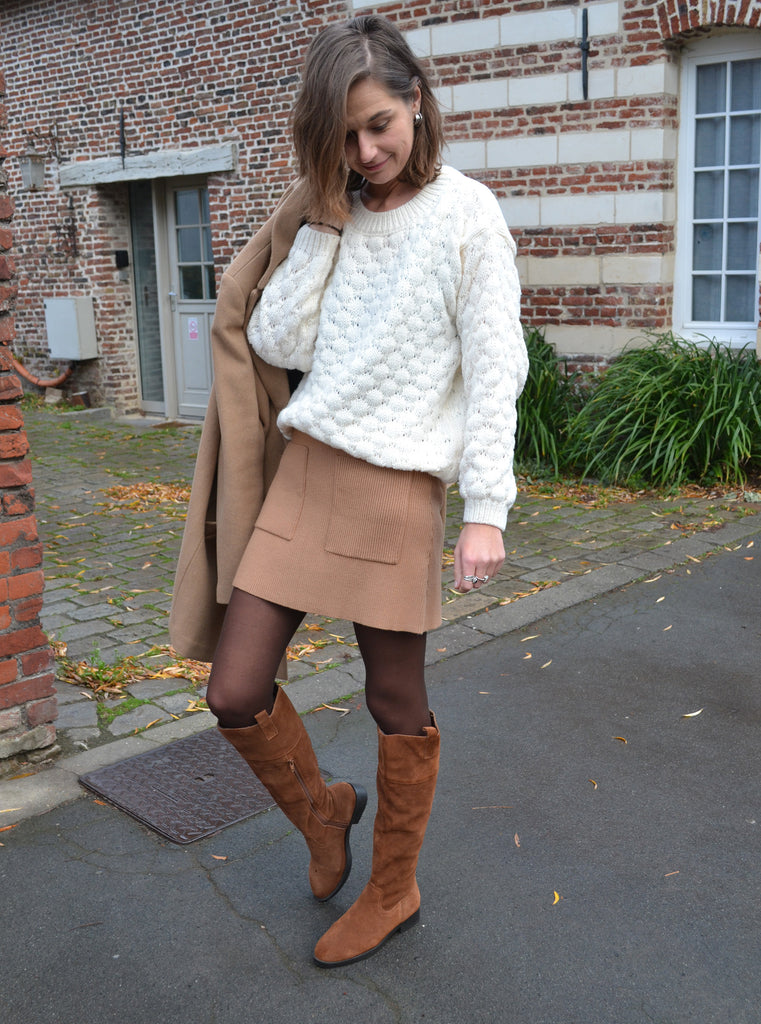 Joli pull en mailles torsadées coloris écru,