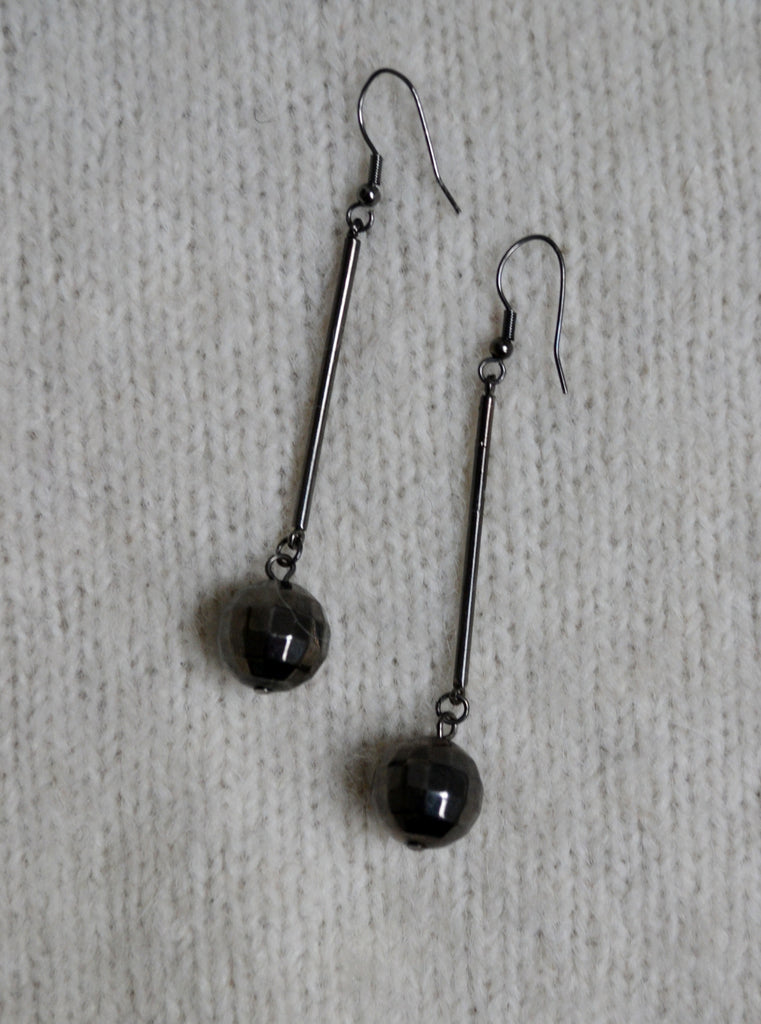 Jolie paire de boucles pour oreilles percées sous forme de tige avec une boule à facette sur le bas.