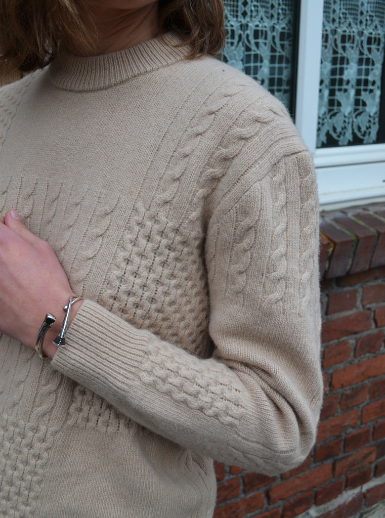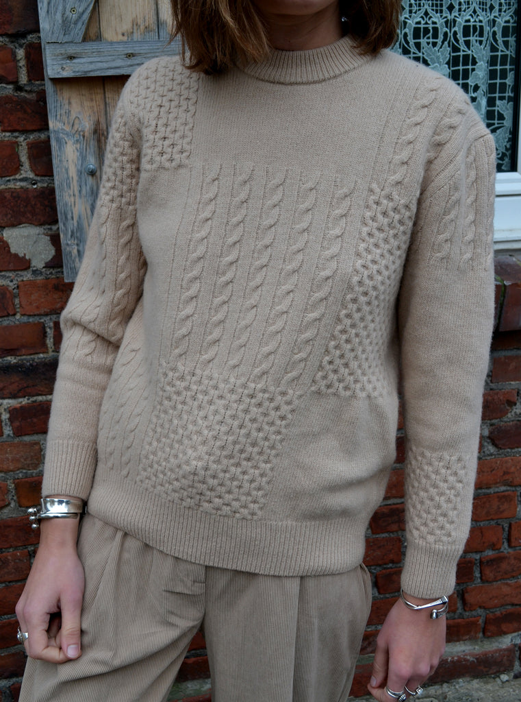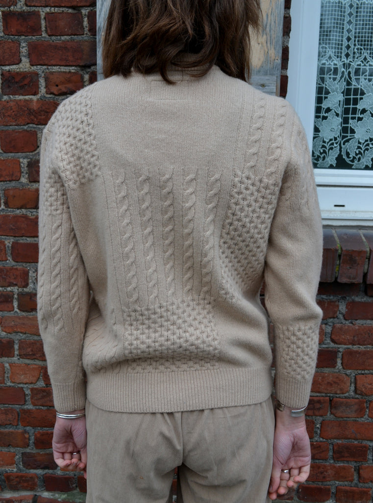 Joli pull en laine mailles torsadées écru,