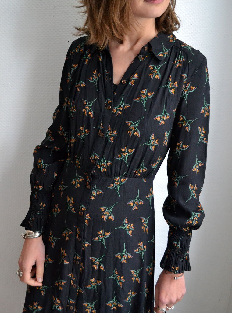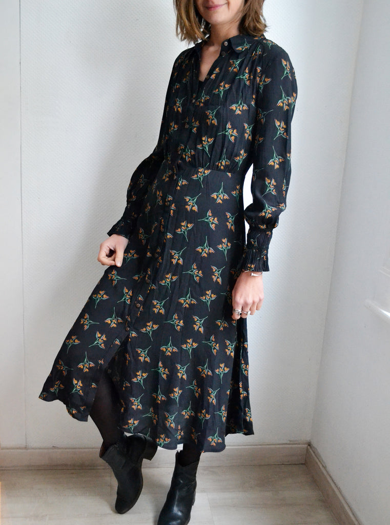 Jolie robe longue fluide Ba&sh boutonnée motif fleuri.