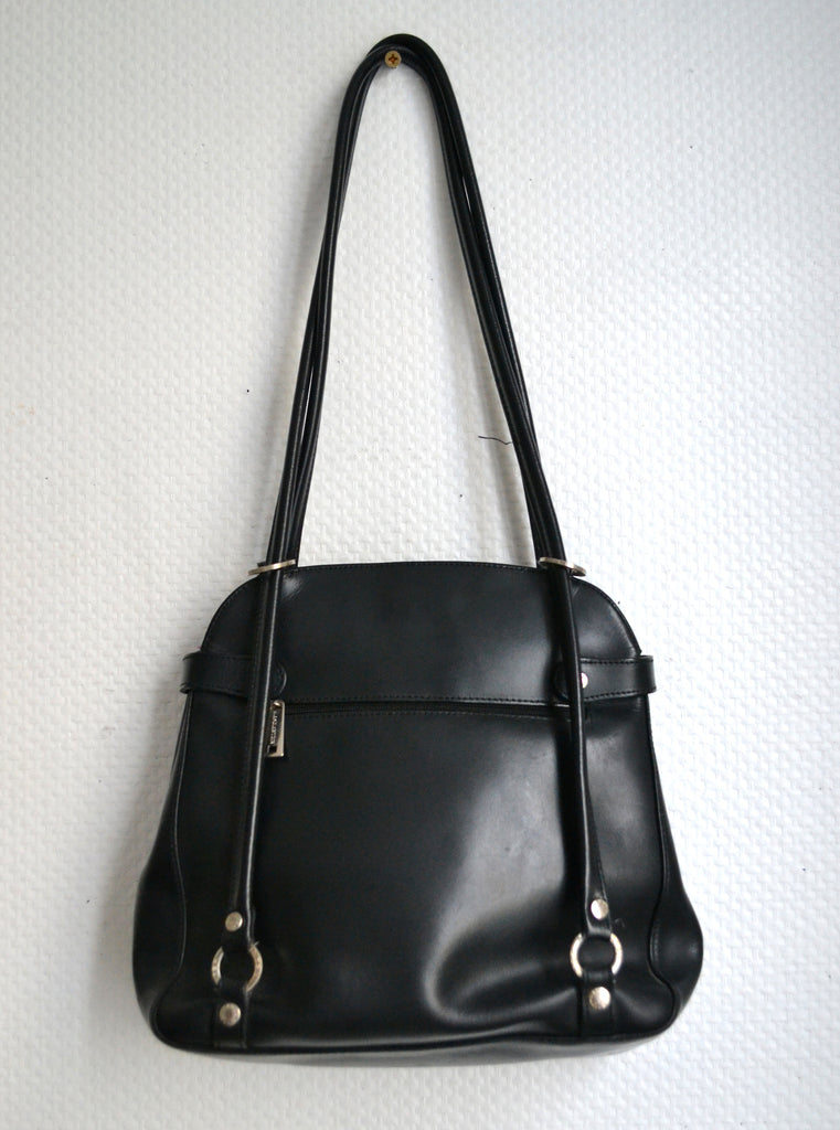 Très joli sac en cuir noir Lancaster à empiècements argentés.