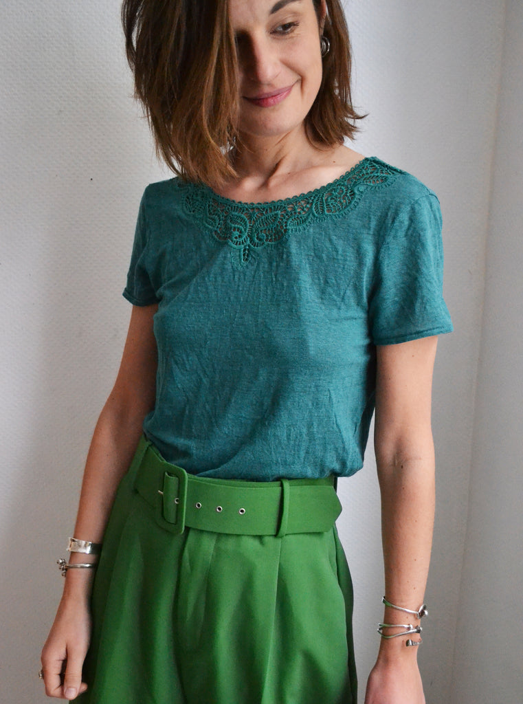 Joli t-shirt en lin vert sapin Sézane,