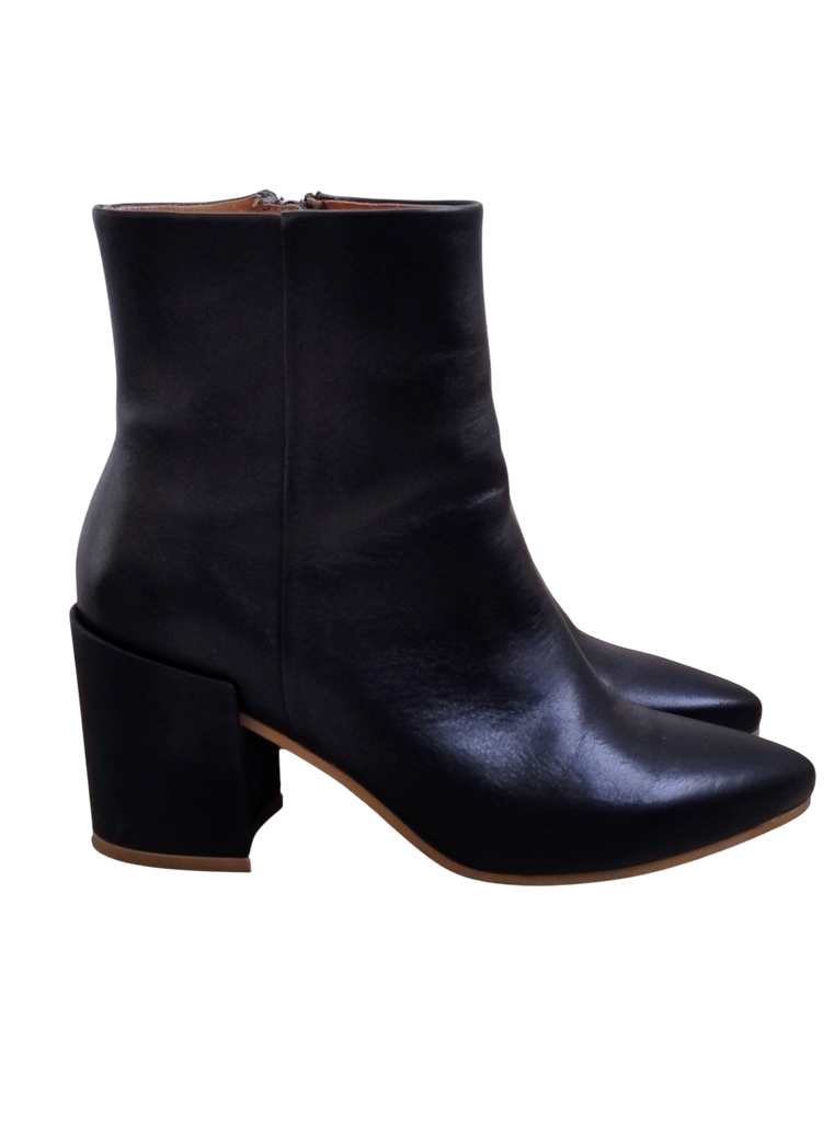 Une superbe paire de bottines en cuir au coloris intemporel à porter aussi bien avec un jean qu'une petite jupe.