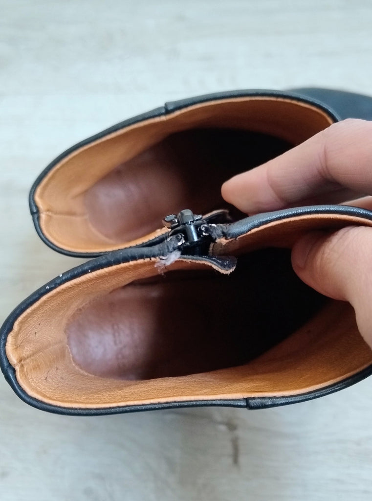 Jolie paire de bottines Cop Copine noire à talons avec un zip sur le côté.