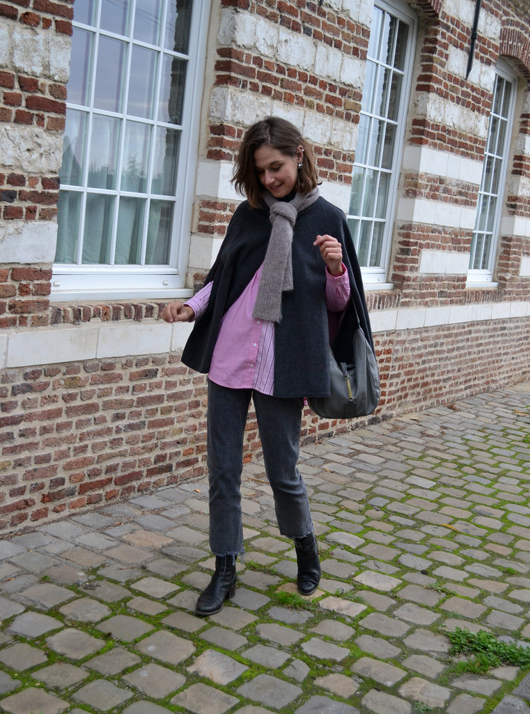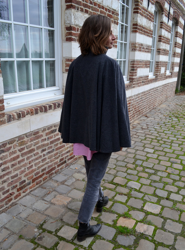 La cape à porter comme une veste sur une chemise ou un pull hyper pratique pour faire du vélo ou mettre sur une robe c'est une pièce cou de cœur.