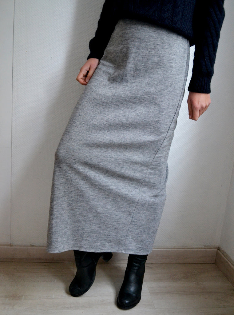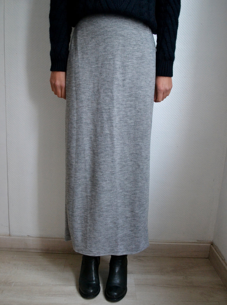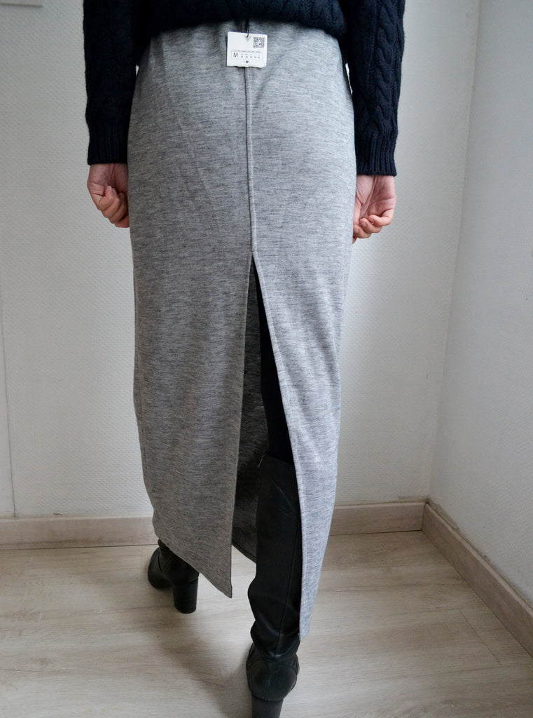 Jolie jupe longue en mailles fines grise neuve avec étiquette,