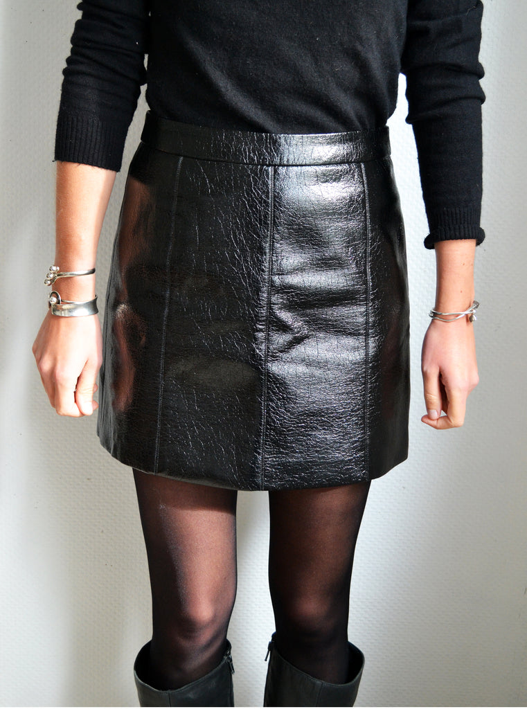 La petite jupe chic à porter au quotidien avec une paire de collants boots/bottes.