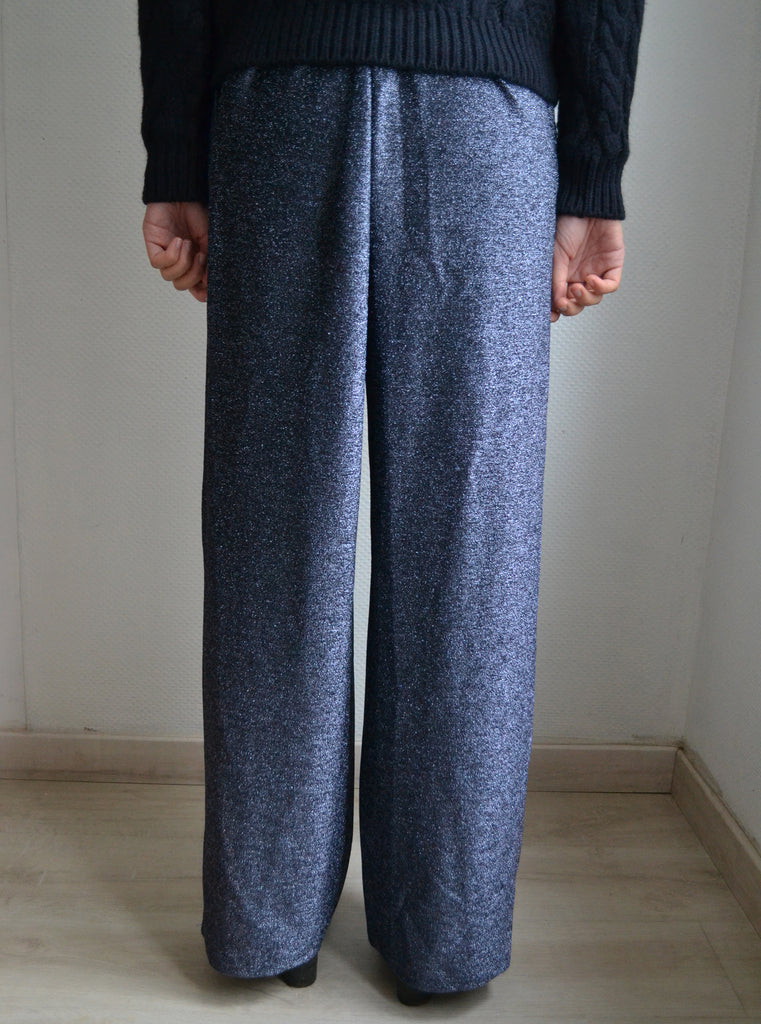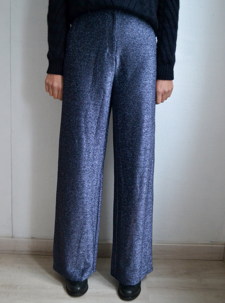 Joli pantalon bleu paillettes souple coupe larges jambes,