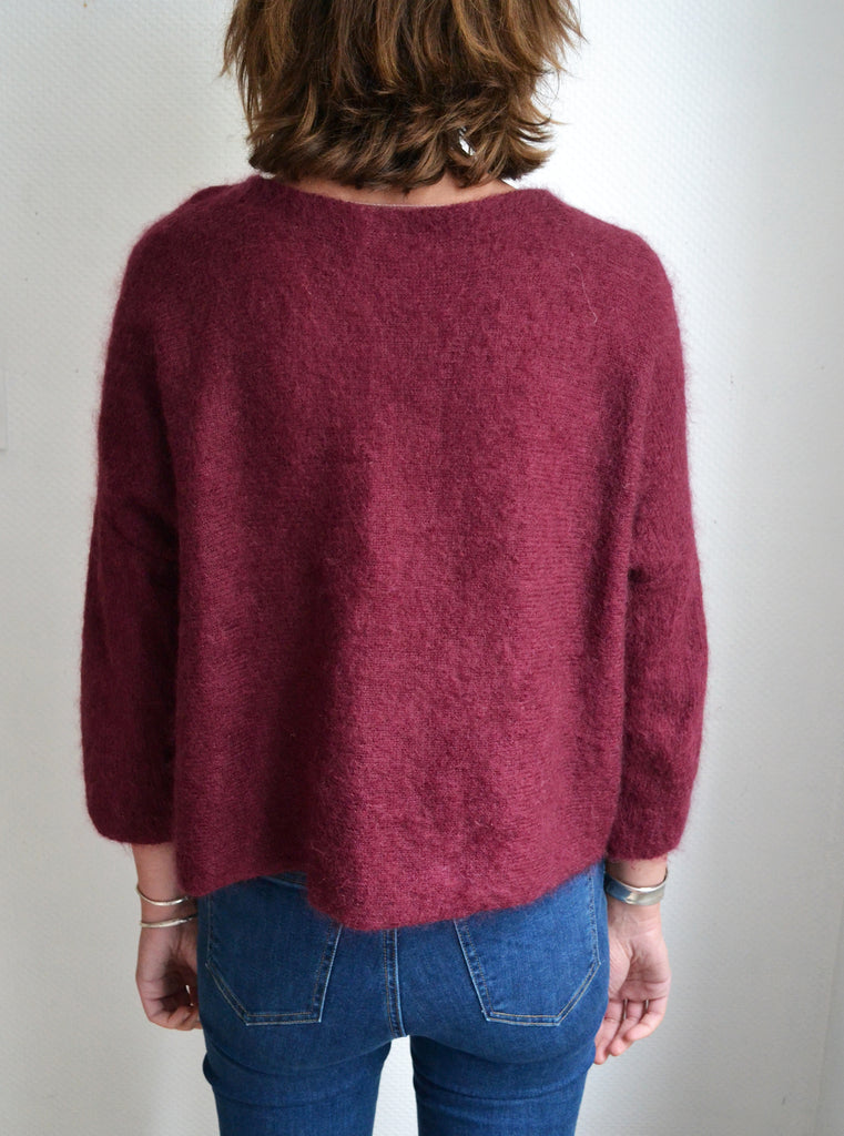 Joli pull tout doux bordeaux col bateau coupe oversize .