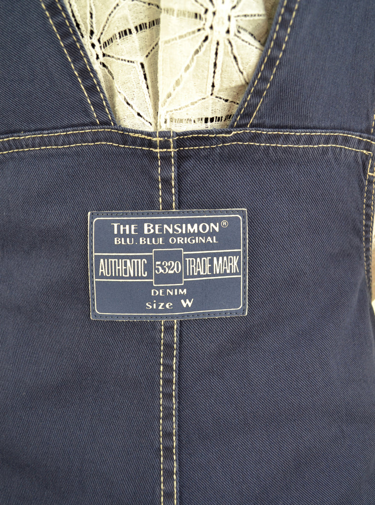 Jolie salopette bleu marine Bensimon avec les bretelles réglables, une poche sur l'avant, et sur le pantalon, des boutons sur le côté des hanches.