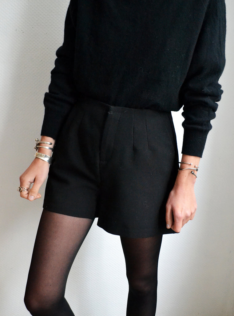 Le short intemporel à porter avec un pull et une paire de talons boots ou bottes.