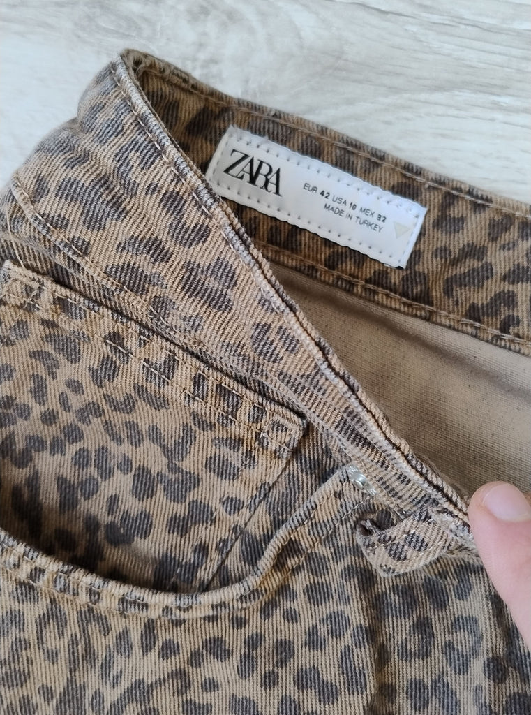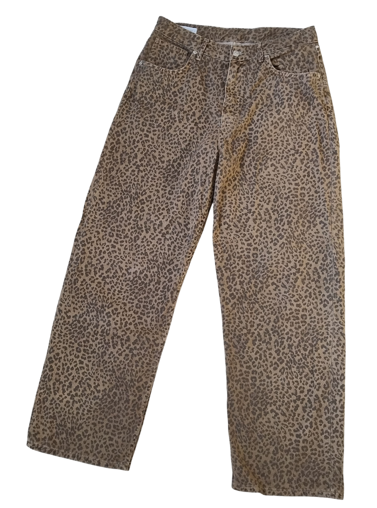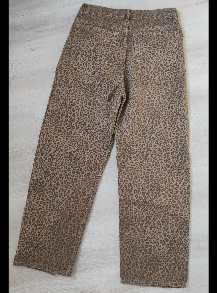 Joli jean Zara larges/jambes baggy motif léopard avec une fermeture par un bouton et un zip, des poches et des passants.