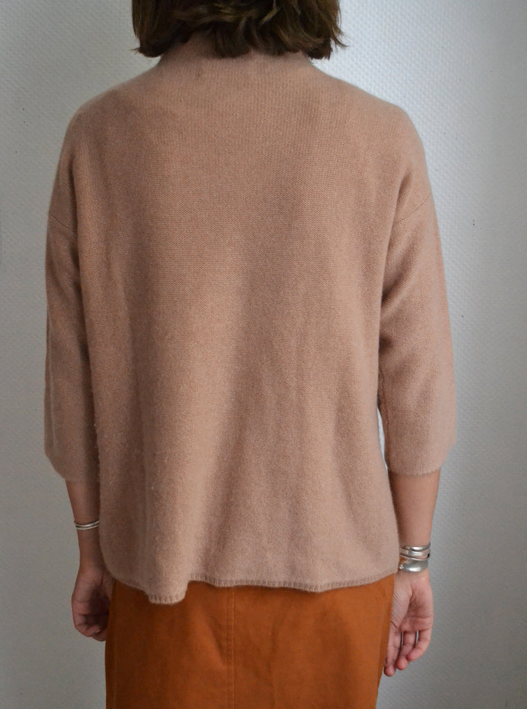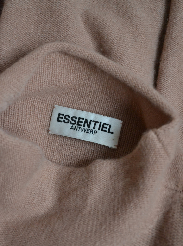 Joli pull tout doux col montant pure cachemire Essentiel Antwerp coloris sable rosé.