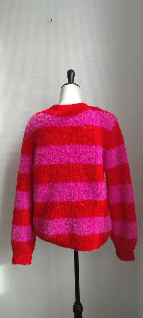 Pull rayé rose et rouge
