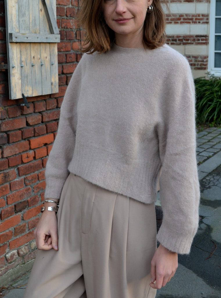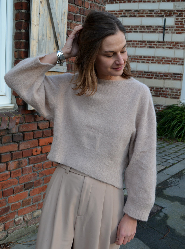 Joli pull coloris sable coupe crop en baby alpaga bien chaud.